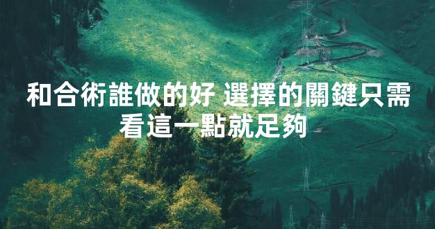 和合術誰做的好 選擇的關鍵只需看這一點就足夠