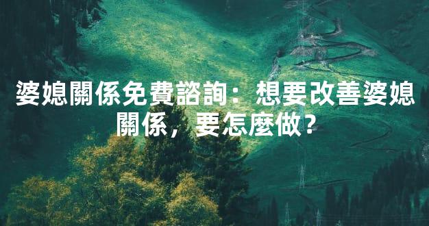 婆媳關係免費諮詢:想要改善婆媳關係,要怎麼做?