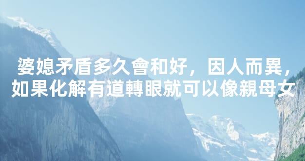 婆媳矛盾多久會和好,因人而異,如果化解有道轉眼就可以像親母女