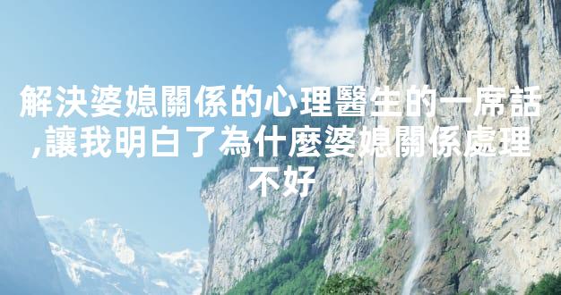 解決婆媳關係的心理醫生的一席話,讓我明白了為什麼婆媳關係處理不好