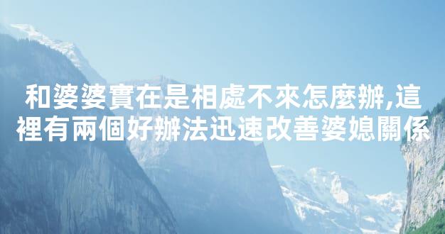 和婆婆實在是相處不來怎麼辦,這裡有兩個好辦法迅速改善婆媳關係